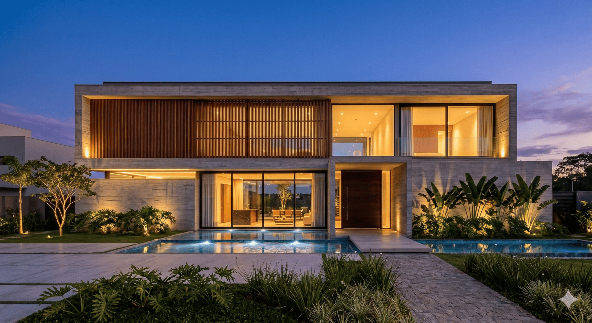 Criamos o projeto arquitetônico e os complementares (estrutural, elétrico, hidráulico) focados em viabilidade. Como somos gestores de obra, projetamos soluções que otimizam o seu orçamento sem abrir mão da estética de alto padrão.